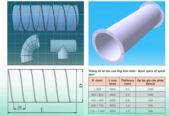 Ống gió tròn xoắn, tròn trơn – Spiral duct, round duct